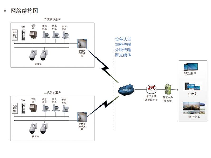 5、遠程監(jiān)控系統(tǒng):對泵房設(shè)備進行數(shù)據(jù)采集、監(jiān)控及分析的系統(tǒng)。