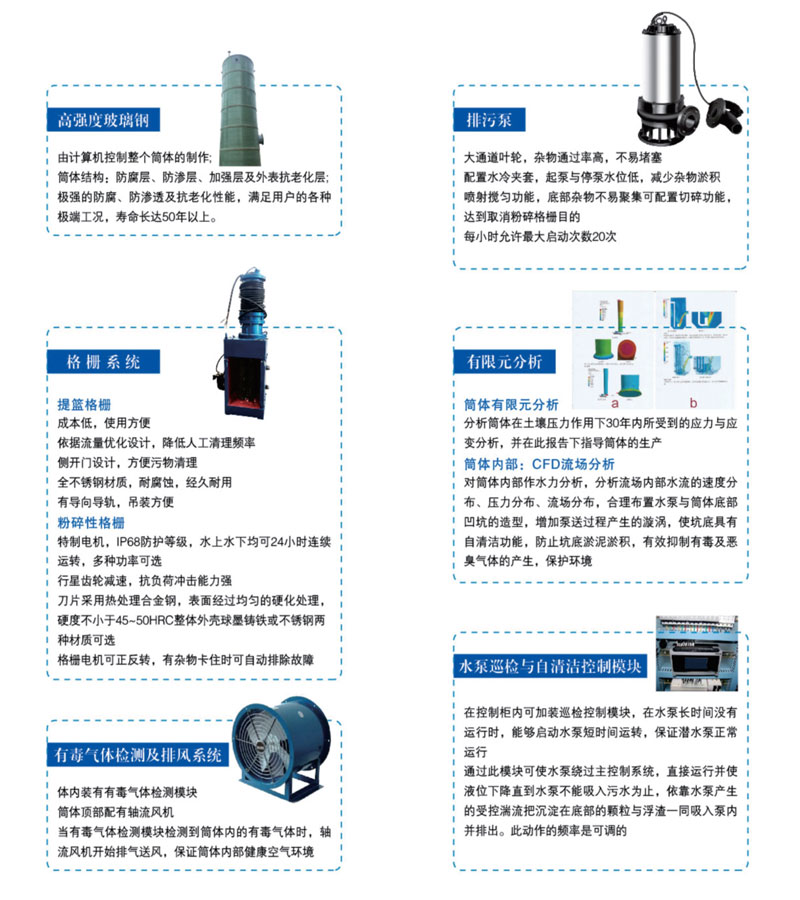 簡(jiǎn)體內(nèi)壁光滑長(zhǎng)期使用不掛臟無需維護(hù)、水泵系統(tǒng)、格柵系統(tǒng)、曾道系統(tǒng)均采用防腐材料制成,使用壽命長(zhǎng)
